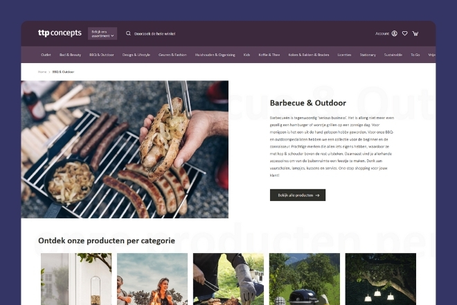 Sjoerd glimlacht als we vragen waarom de webshop geen standaard vormgeving heeft: “Alles bij ons moet van Champions League-niveau zijn. Dat zie je al in onze showroom, die van hoog kwaliteit is, maar het geldt voor alles: de kantine, software, auto’s, onze presentatie op beurzen en dus ook de webshop. Alles van topklasse.” TTP Concepts koos daarom niet voor een standaard webshopvormgeving; alles is visueel ingesteld, met veel fotografie en sfeerbeelden die dezelfde ambiance overbrengen als de showroom. “Mark (de vormgever, Batao) is zelfs een dag langs geweest om aan te voelen wat we zoeken. Hij weet altijd precies de juiste snaar te raken.”